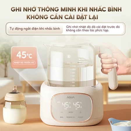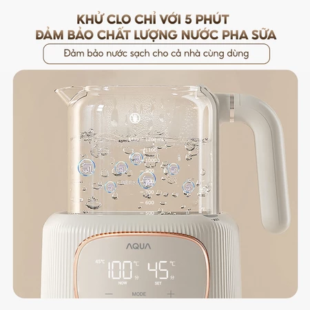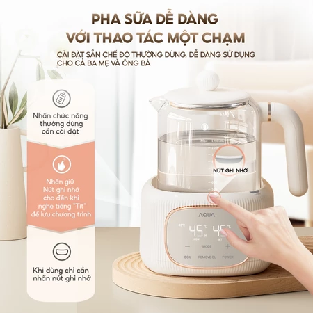 Máy đun nước pha sữa AQUA MH121T khử clo, đun siêu tốc, nút ghi nhớ riêng cho ba mẹ, ông bà