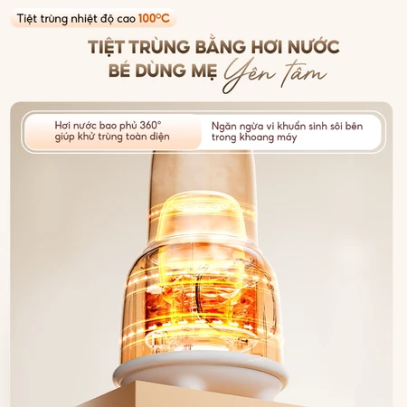 8. Tiệt trùng toàn diện bằng hơi nước nhiệt độ cao, ngăn ngừa vi khuẩn sinh sôi bên trong khoang máy