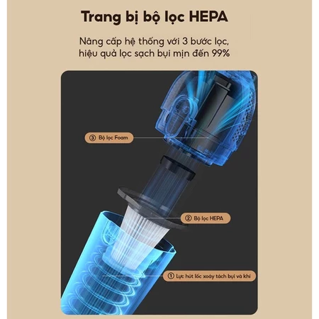 3. Trang bị bộ lọc HEPA nâng cao hiệu quả lọc và tránh bụi bay ra tái nhiễm môi trường ngoài. Bộ lọc HEPA có thể rửa được với nước và tái sử dụng