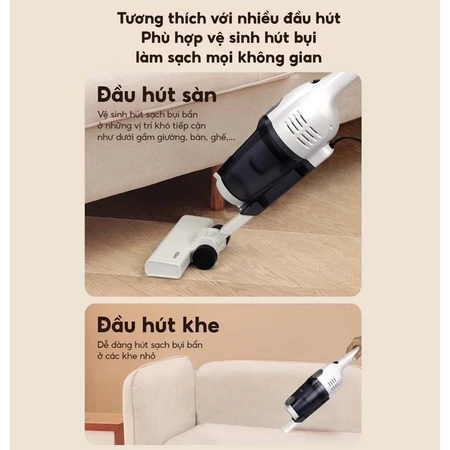 1. Máy hút bụi cầm tay AQUA thiết kế 2 trong 1 dạng hút bụi sàn nhà và hút bụi cầm tay (các khe, rãnh, góc nhỏ bằng đầu hút khe)