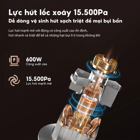 3. Lực hút 15.500Pa dễ dàng hút bụi bẩn li ti và các rác sinh hoạt lớn nhỏ trong gia đình