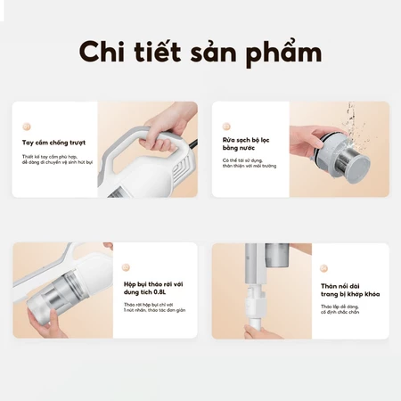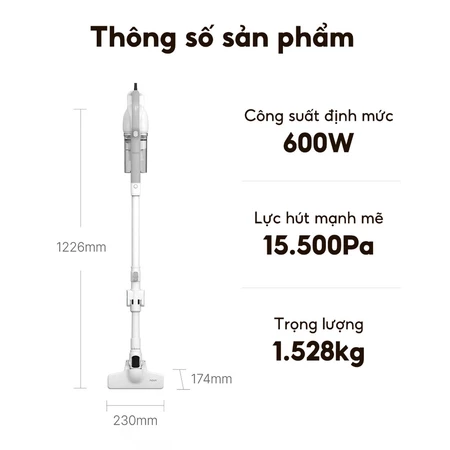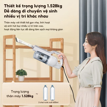 Tháo rời cầm tay, Đầu hút bụi kèm theo, Có bánh xe, Bộ lọc HEPA, Đầu gập 90 độ
