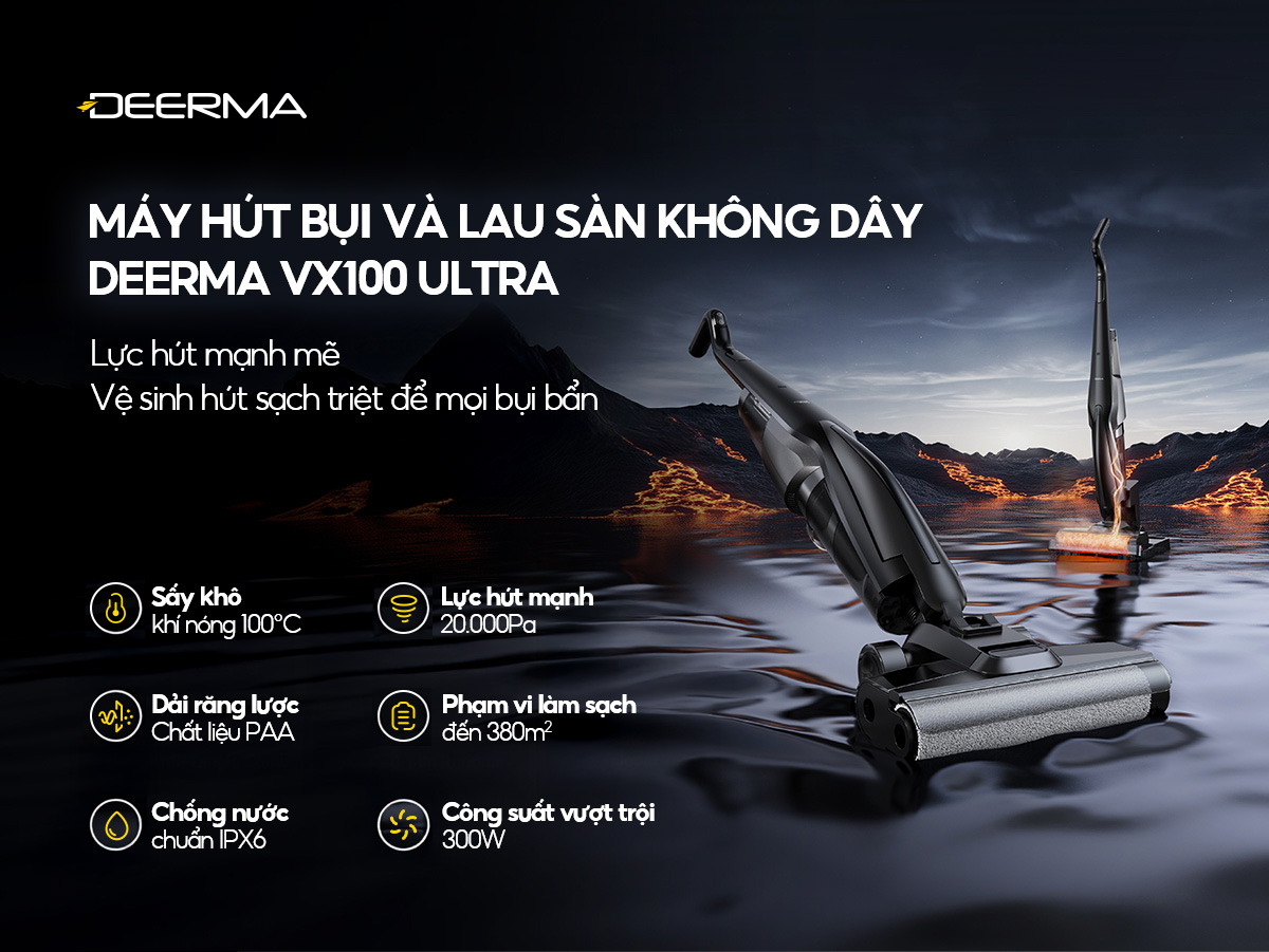 Với thiết kế và công nghệ tiện lợi, máy hút bụi lau sàn DEERMA VX100 ULTRA 2IN1 giúp bạn vệ sinh dễ dàng mang lại hiệu quả gấp 3 lần máy hút bụi thường.