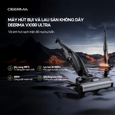 Máy hút bụi lau sàn Deerma VX100 Ultra lực hút mạnh 20000pa tự động làm sạch và sấy khô con lăn thông minh – Bảo hành 12 tháng