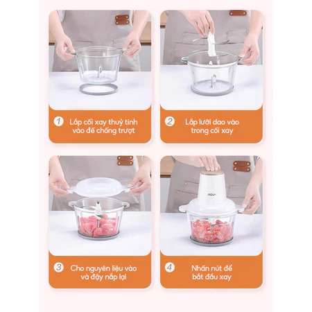 Máy xay thịt Aqua GGS201R cối thuỷ tinh, dung tích 1.8L, lưỡi dao sắc bén xay cua, thịt cá, rau củ – Bảo hành 12 tháng