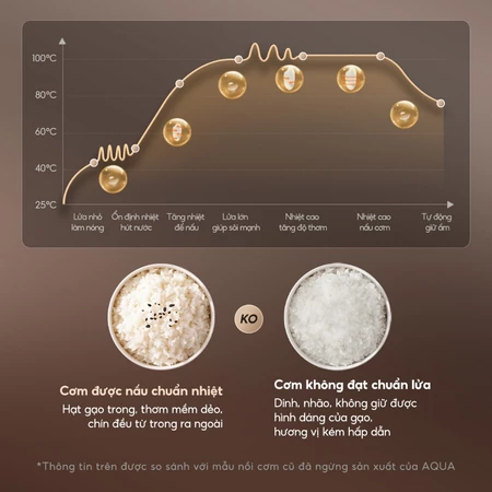 3. Nồi cơm được nấu chuẩn nhiệt thông minh tự điều tiết theo 7 cấp độ nhiệt và độ ngấm nước chuẩn xác cho hạt gạo trong, căng mọng hơn (lửa nhỏ làm nóng, ổn định nhiệt hút nước, tăng nhiệt để nấu, lửa lớn giúp sôi mạnh, nhiệt cao tăng độ thơm, nhiệt cao nấu cơm, tự động giữ ấm)