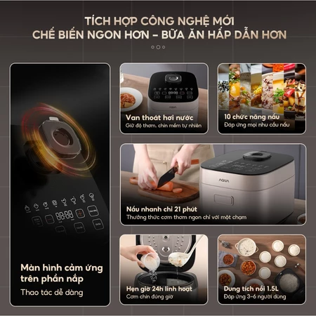 Nồi cơm điện tử AQUA RBC401R 1.5L, điều khiển cảm ứng 10 chế độ nấu, hẹn giờ 24 tiếng