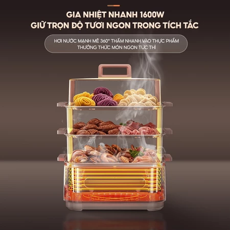 1. Nồi lẩu hấp đa năng gia nhiệt nhanh với công suất 1600W, hơi nước mạnh mẽ 360 độ giúp thẩm thấu nhanh vào thực phẩm