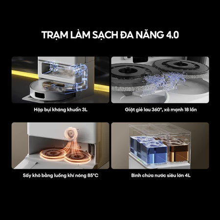 ️- Hiệu quả lọc sạch bụi: Động cơ 600W tạo lực hút mạnh mẽ 15.000Pa, giúp nhanh chóng gom bụi và túi đựng hoàn toàn tự động, ngăn bụi phát tán ngược trở lại không khí.