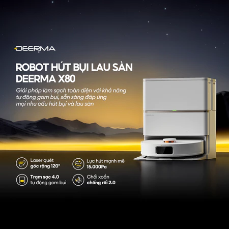 Robot hút bụi lau sàn đa năng Deerma X80 phiên bản nâng cấp lực hút 15.000Pa kèm trạm sạc tự động gom bụi thông minh, điều khiển từ xa qua Mi Home App – Bảo hành 24 tháng